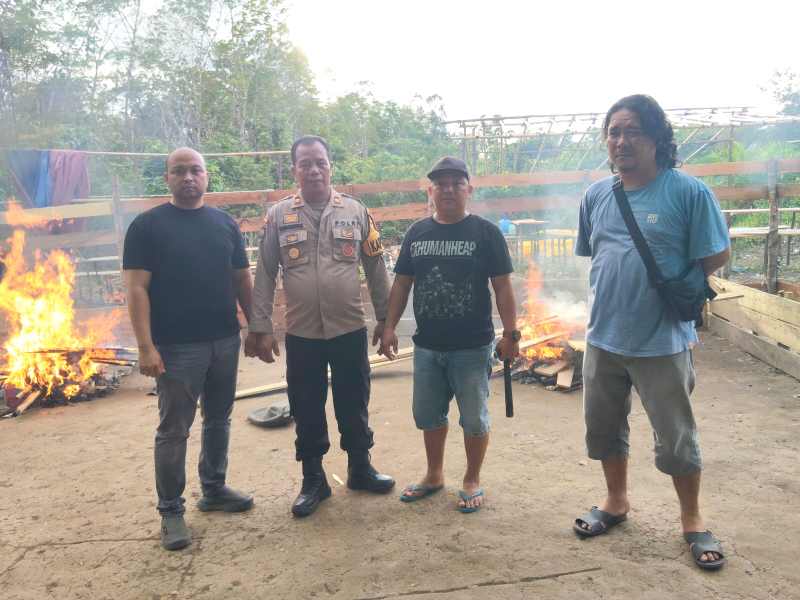 Foto : Kapolsek Tempunak Iptu Rudi Simanjuntak S.Sos Pimpin Langsung Pembongkaran Arena Sabung Ayam Di Desa Suka...